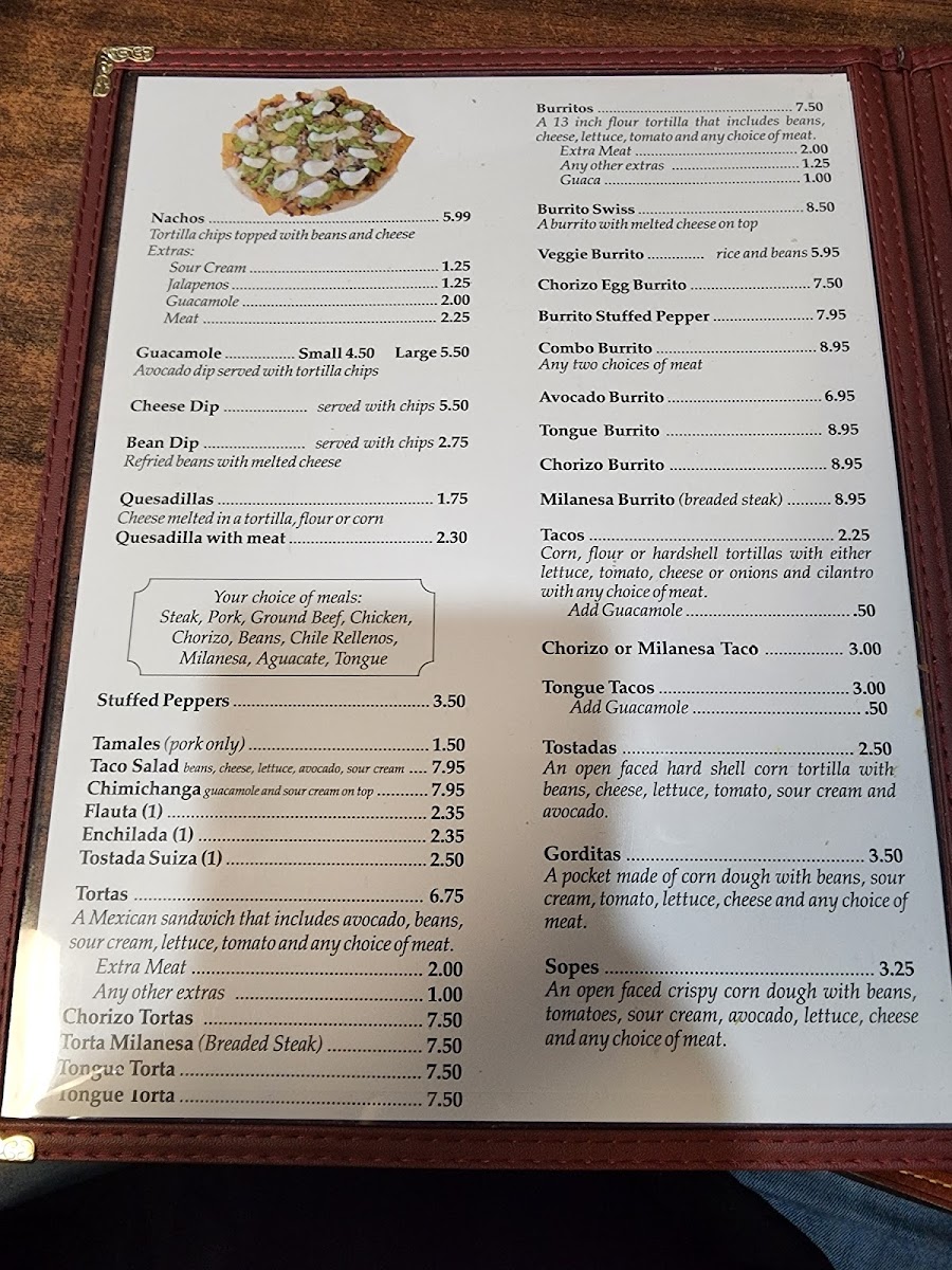 The menu at El Amigo Restaurant offers a variety of traditional Mexican dishes suitable for casual dining occasions such as lunch or dinner. It features categories including appetizers, soups, and à la carte items, allowing guests to choose from light starters to more substantial meals.
